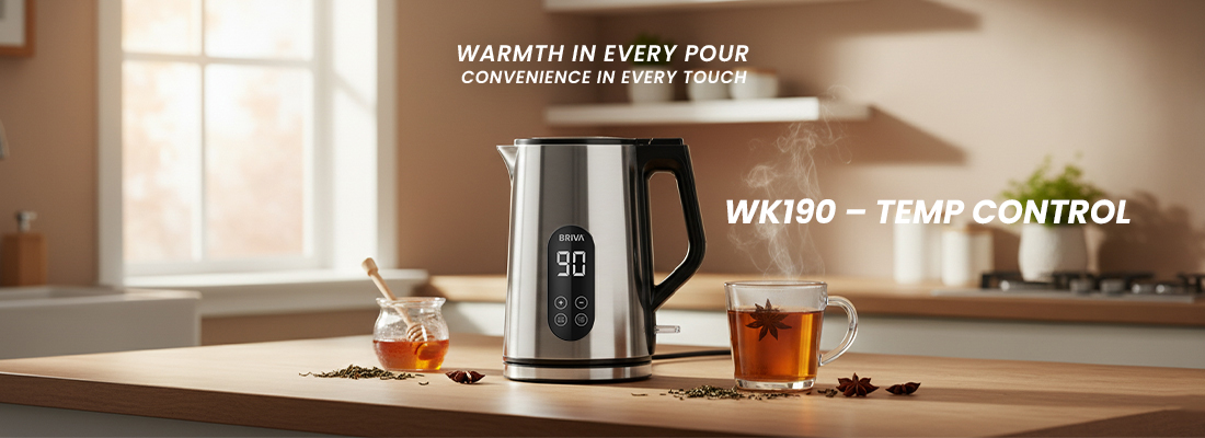 Premium double-layer stainless steel kettle designed for insulation, safety, and performance. Equipped with a digital display, Strix controller, and automatic shut-off for a precise and reliable boiling experience.