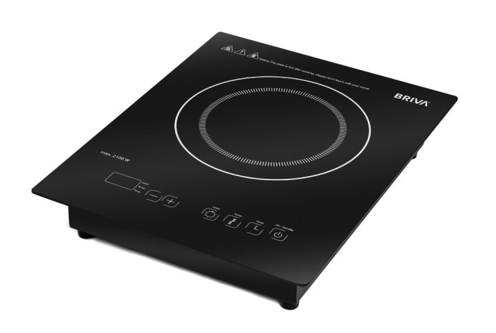 - Stand-alone induction cooktop with bevelled control panel with touch panel and large LED display